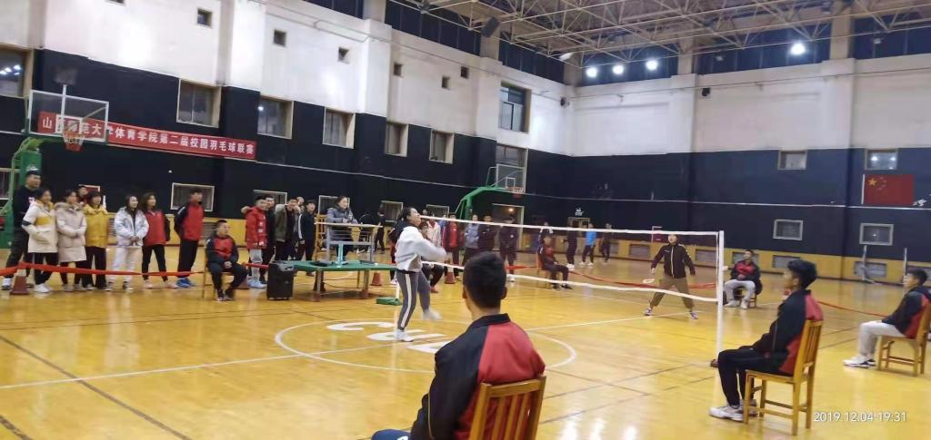 12月04日晚上19:00,2019年校园羽毛球决赛在综合馆进行,比赛从一开始就进入了白热化阶段,竞争异常激烈,选手们都表现出顽强拼搏的竞技精神,同时也发挥了团队的协作意识,羽球扣杀,别有一番风景,赢得观看的同学阵阵喝彩,最后运动训练系1803班代表队以2:1赢得比赛。