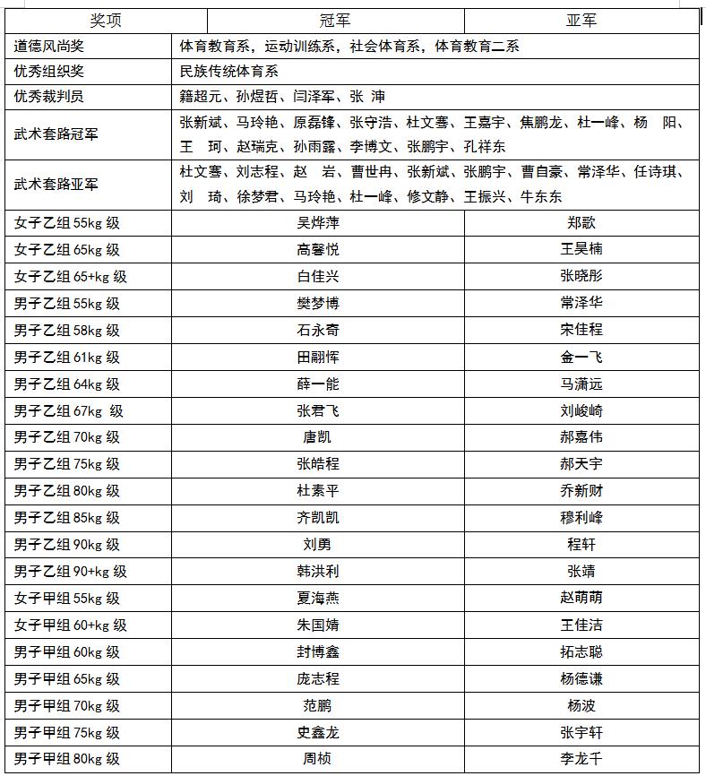 第四届“搏击杯”武术大赛获奖名单