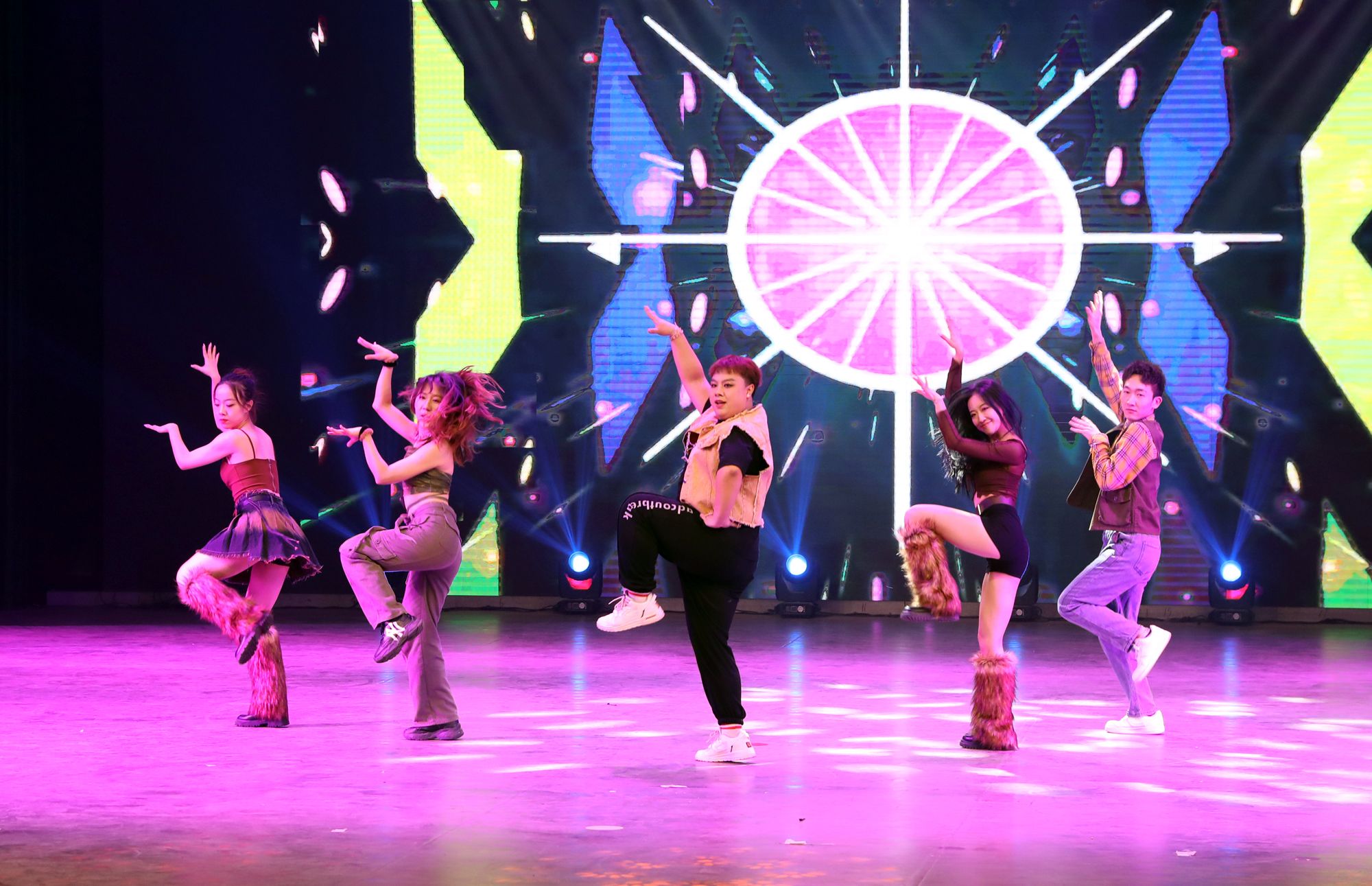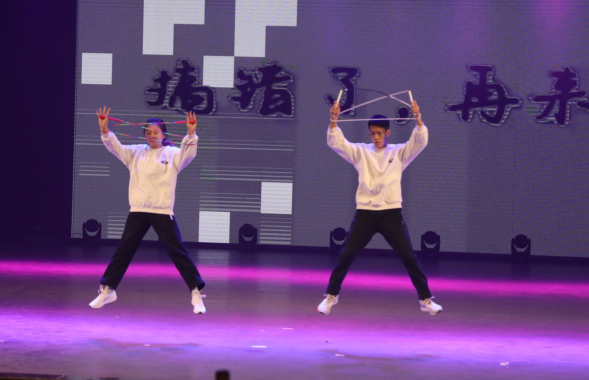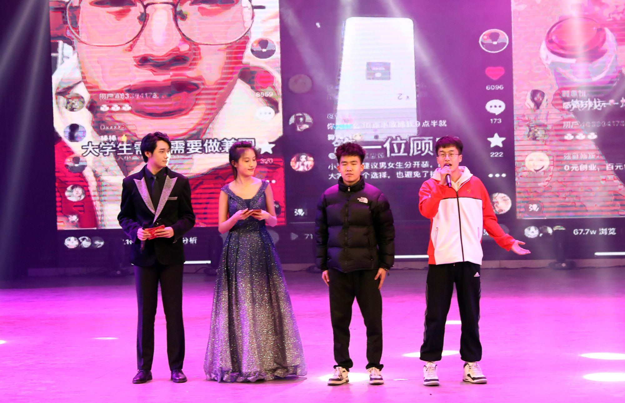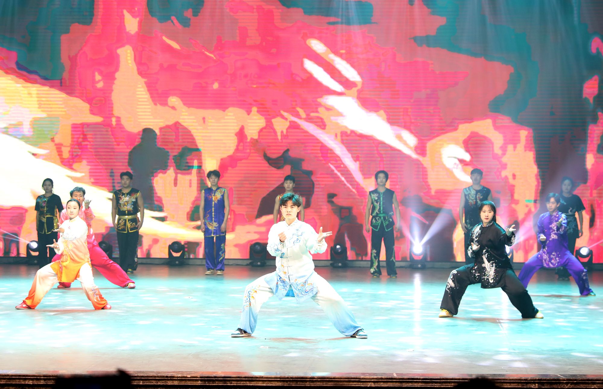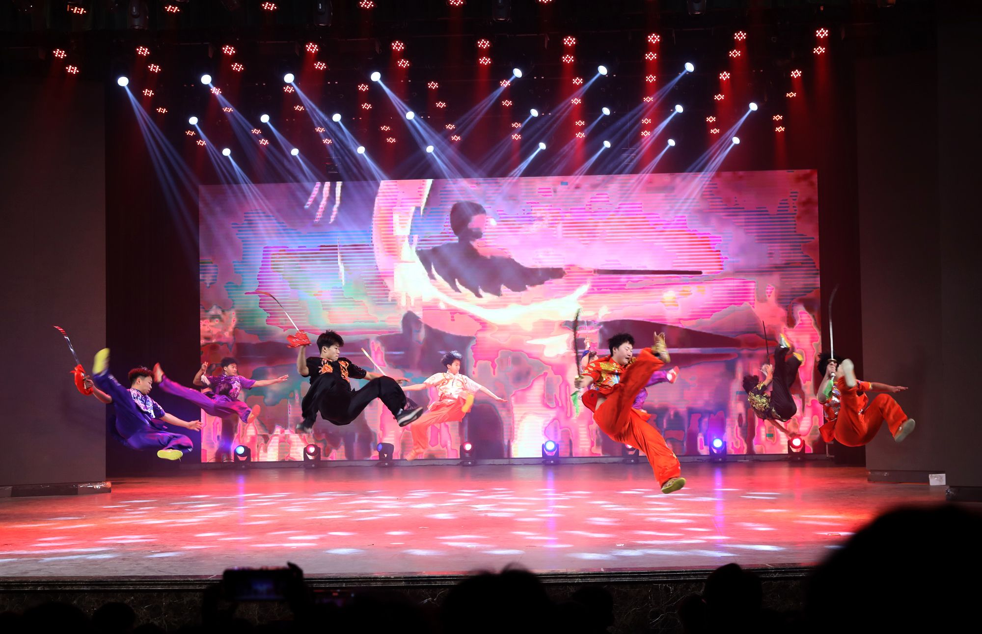 铿锵有力的音乐和传统的舞狮文化开场,使每一位观众都融入其中。民族传统体育系同学们为大家带来武术表演《武动乾坤》,他们紧致的肌肉线条和优美的武术动作被展示的淋漓尽致。兄弟公司节奏感非常强的舞蹈《Queen card》展示出了他们青春的活力。哑春乐队和任磊老师为大家带来了一首充满了摇滚气息的歌曲《离开地球表面》,点燃了全场观众的热情。女老师们也在闲暇之余为大家准备了一个有趣又优雅的舞蹈《舞动青春》,大家伙纷纷为她们加油喝彩。民族传统体育系同学们的武术表演《红色追忆》,歌颂了长征途中为祖国赴汤蹈火、前仆后继的英雄。体教2303班的同学们在小品《药方》中通过夸张的神态,不断反转的剧情,引起了台下观众的惊喜连连,也让大家感受到了他们沉甸甸的爱国之心。最后,同学们在《相亲相爱》的大合唱中将元旦晚会推向高潮。与会人员在合影留念中圆满落下帷幕。