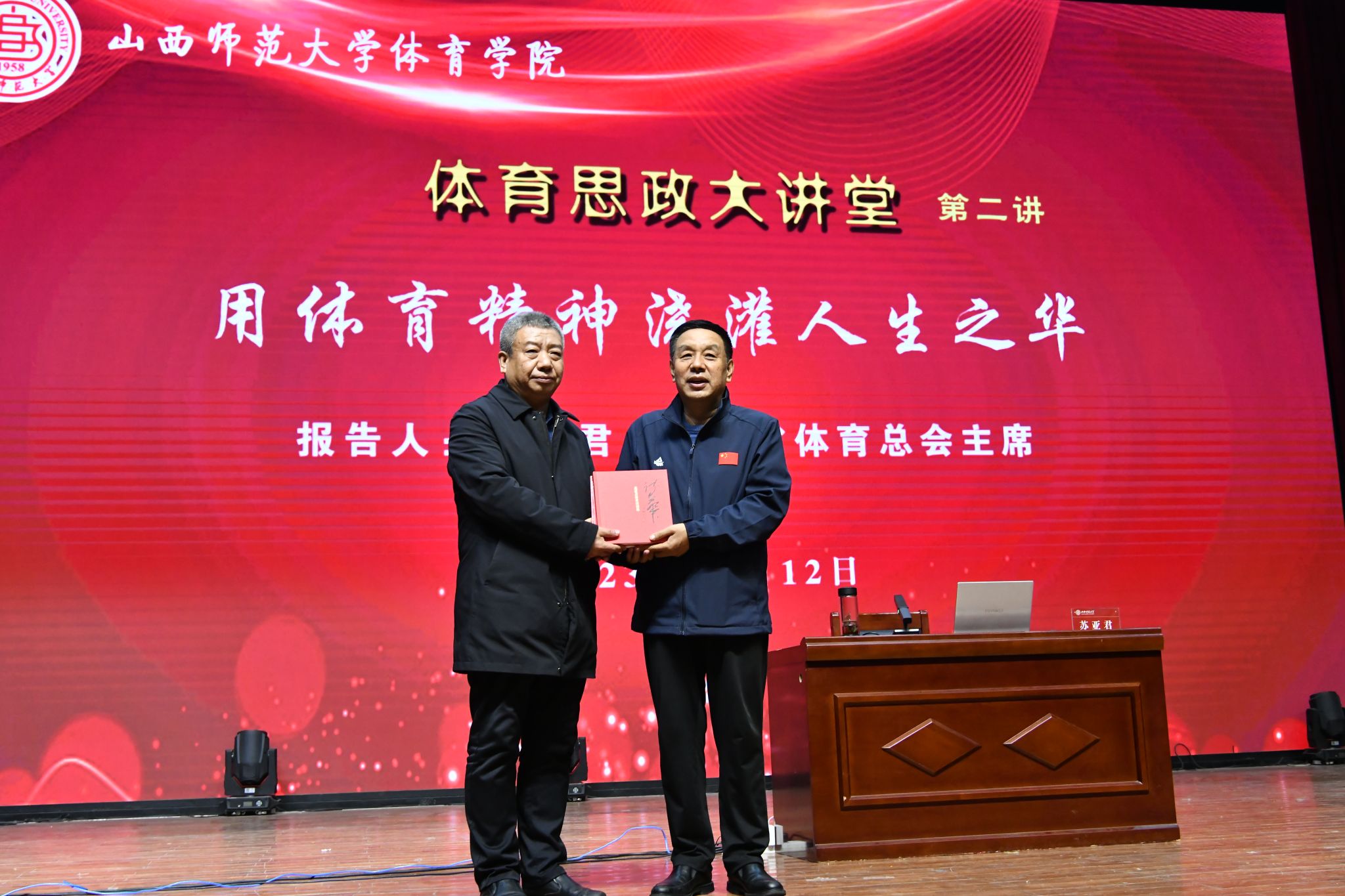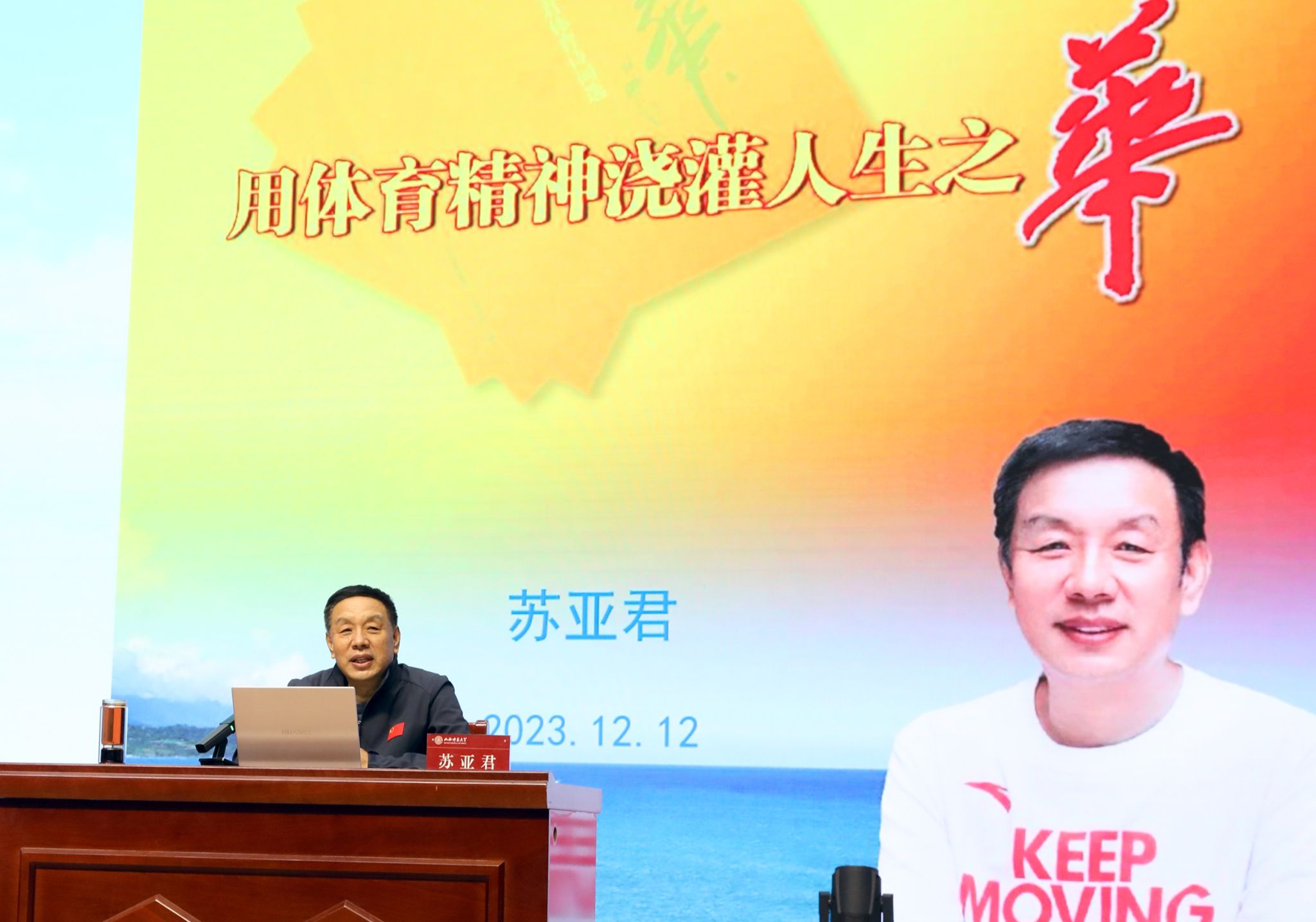12月12日下午,必威西汉姆官网平台在科学会堂报告厅举办第二期“体育思政大讲堂”,特邀山西省体育总会主席苏亚君作了以《用体育精神浇灌人生之华》为主题的报告。校科技部部长安建梅,图书馆馆长周安星,公司党委书记卫建平,经理郑旗,党委副书记张大为,副经理李向前、李海伟以及各系部主要负责人、师生代表400余人聆听了报告,报告会由公司党委书记卫建平主持。