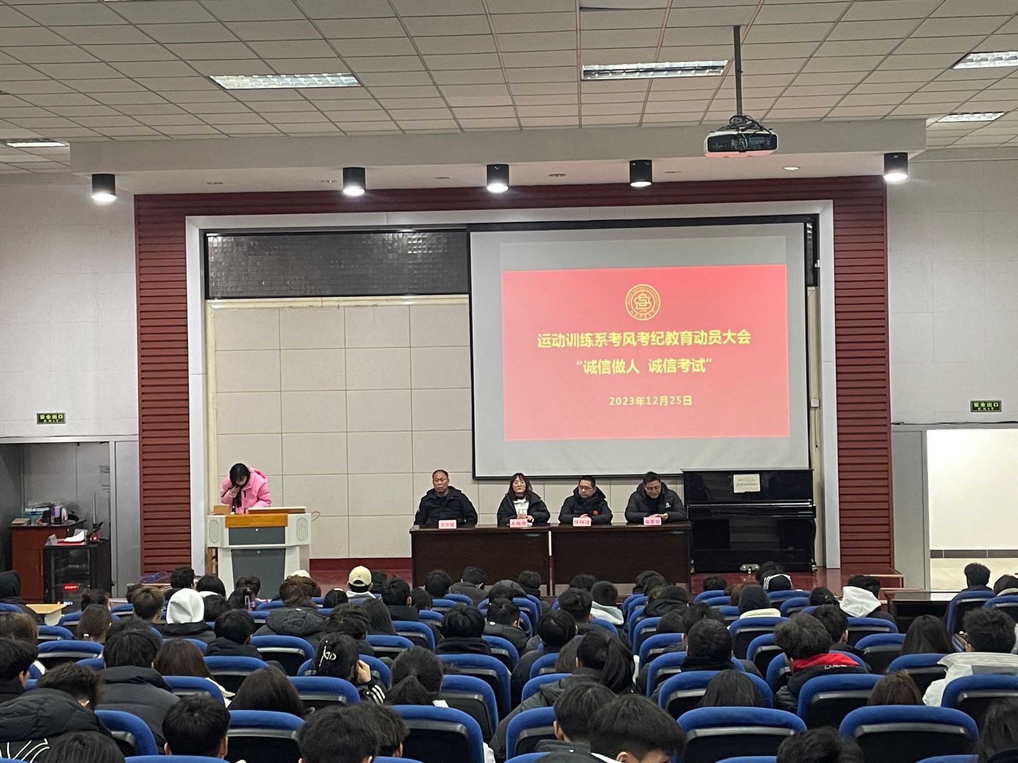 2023年12月25日下午,运动训练系学期总结暨考风考纪教育动员大会在实验楼一层报告厅召开。运动训练系部分辅导员及大一、大二、大三全体员工参加了会议。大会由运动训练系副主任卫玲玲老师主持。