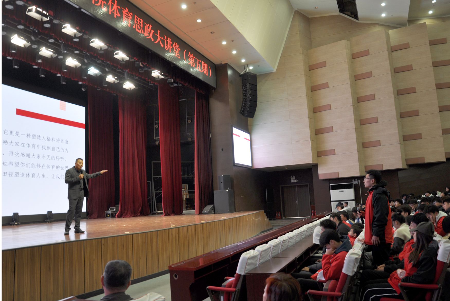 窦兆波老师强调,“田径不仅仅是一项运动,更是一种精神,一种力量。它教会我们如何在逆境中坚持,在挑战中成长,在胜利中保持谦逊。这种精神,正是我们新时代青年应该学习和传承的。讲座中,他通过生动的事例和深刻的见解,让在场的每一位师生都深刻感受到了体育的独特魅力与价值。