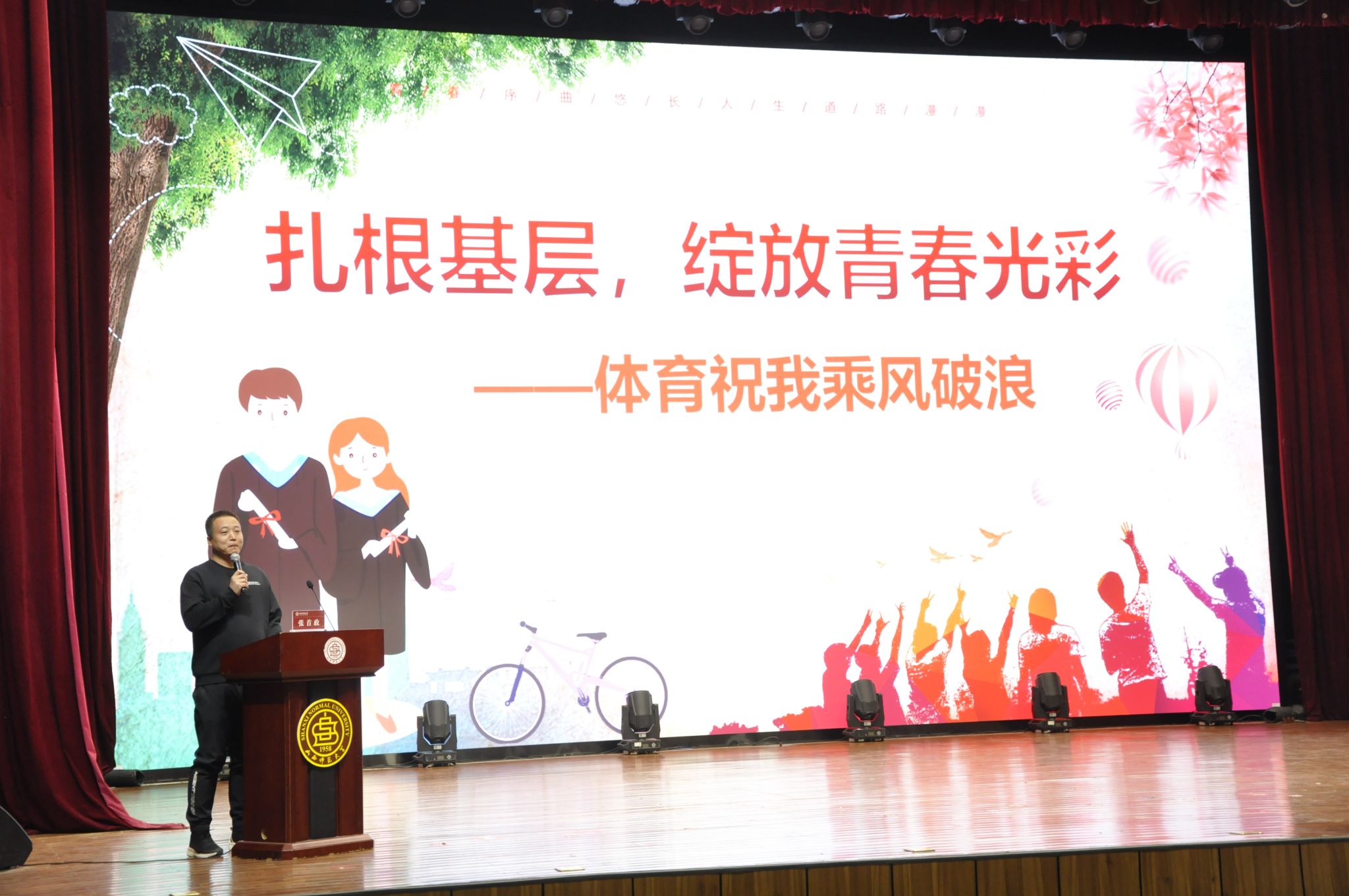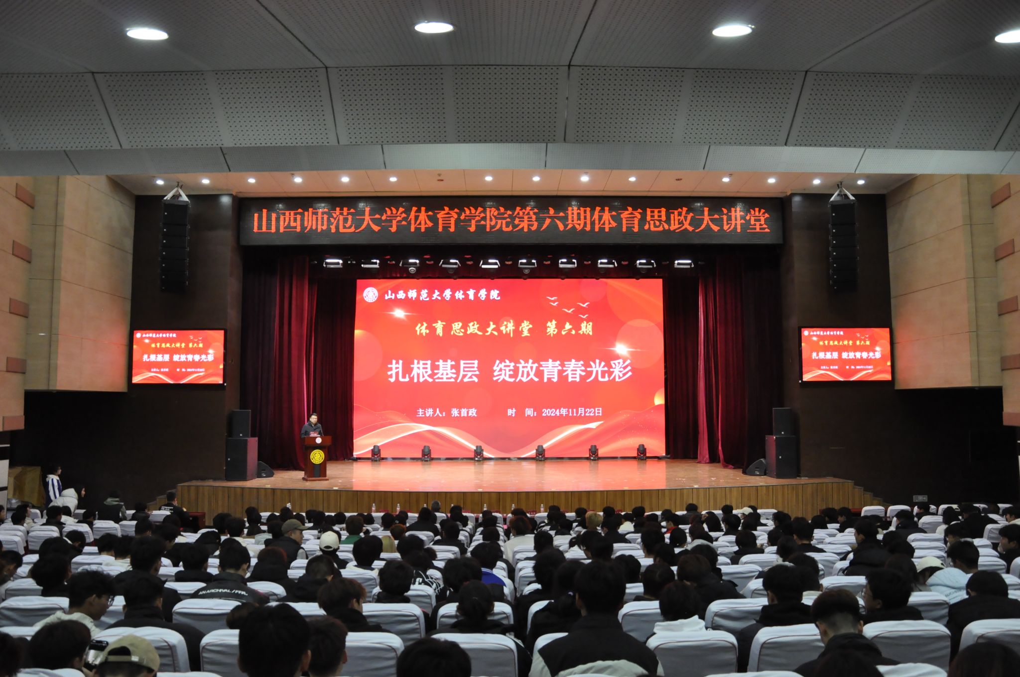 11月22日下午,第六期体育思政大讲堂在科学会堂举行。本次大讲堂迎来了公司社会体育系2018届员工、2023年全国基层就业卓越奖的获得者——张首政。张首政先生重返母校,为师生们带来了主题为“扎根基层 绽放青春光彩”的精彩报告。必威西汉姆官网平台党委书记卫建平、党委副书记张大为、社体系主任李俊明、团委负责人白翊辰、各辅导员老师以及400余名员工代表聆听了报告。报告会由白翊辰主持。