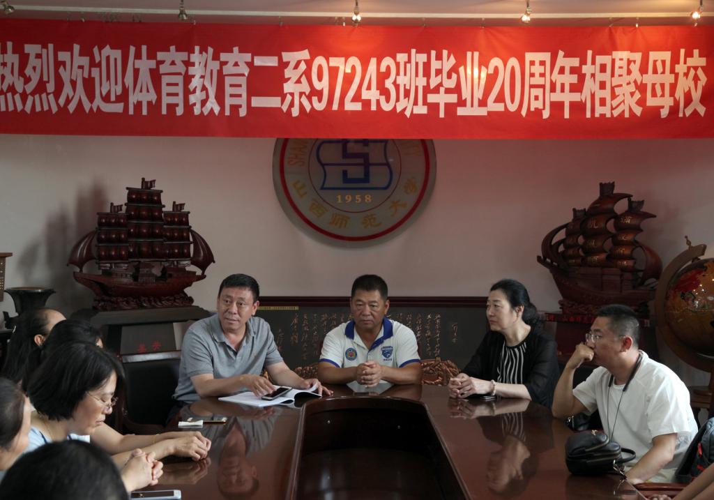 七月的临汾骄阳似火、热浪滚滚。7月13日,公司体育教育二系97243班毕业20周年重返母校,与公司领导、老师们共聚一堂,共同回忆20年前在体院学习生活的美好时光。经理郑旗、李吉慧教授、时任二系副主任焦绿青、辅导员吴合斌参加了座谈会,公司党委书记李学刚在驻地宾馆看望了员工。