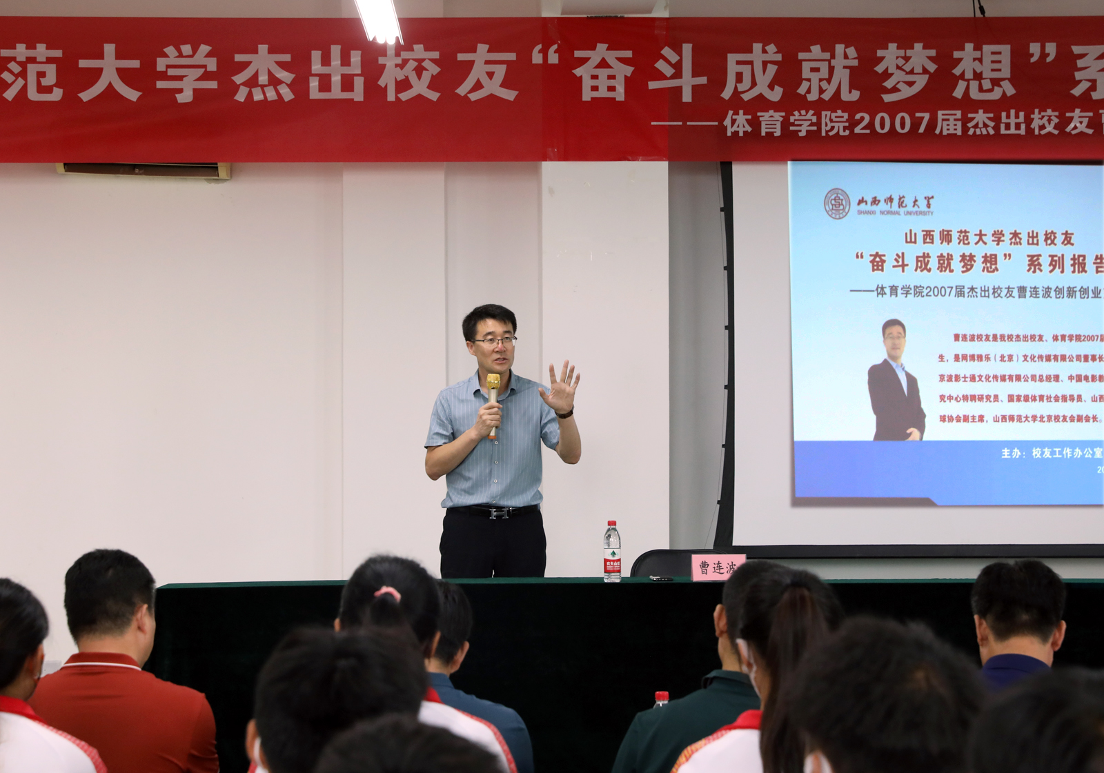8月24日下午,必威西汉姆官网平台杰出员工“奋斗成就梦想”系列报告会在必威西汉姆官网平台7号楼2层心理实验室举行,必威西汉姆官网平台2007届杰出员工曹连波与师生分享创新创业经验和心得体会。报告会以线上线下相结合的方式进行。员工办公室主任、国内合作处处长陈向波,必威西汉姆官网平台领导班子成员、各系部负责人、辅导员老师、教练员代表以及50名员工在现场参加报告会,200余名员工代表在线上聆听了报告。会议由公司党委书记卫建平主持。