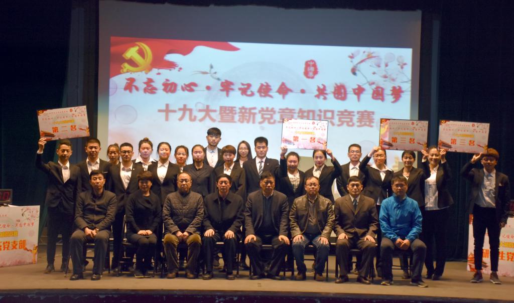 竞赛现场精彩纷呈,高潮迭起,其内容涵盖了十九大、新党章党规党纪相关知识,设置了党支部书记答题、必答题、抢答题、争分夺秒、风险题五个环节,每个环节规则各异,既考验参赛选手掌握党章党规党纪知识的全面性、系统性,也能够将选手综合运用党章党规党纪知识分析问题的能力和临场表现力展现得淋漓尽致。首先由各系党支部书记答题,每一位书记都可以快速回答正确答案,展现了他们丰富的知识积累和敏捷的思辨能力。之后,各代表队参赛选手使出浑身解数,沉着应对,密切配合,在必答题环节精准,抢答题环节激烈,风险题环节谨慎,过关斩将,你追我赶,以饱满的精神状态,积极踊跃回答着每一道竞赛题,气氛活跃而紧张,上演了一场精彩纷呈的党建文化盛宴。在工作人员统计分数的时间内,主持人与现场观众进行了互动环节,大家积极参与抢答,工作人员将新党章作为礼品赠送给他们。最后院领导老师为获奖单位及优秀个人颁发了奖状,并进行了合影留念。