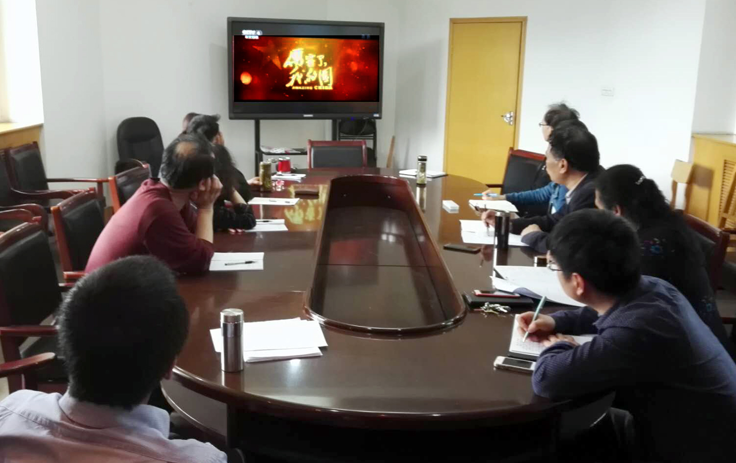 接下来,大家一起观看了《厉害了,我的国》纪录片。该纪录片呈现了党的十八大以来在创新、协调、绿色、开放和共享的新发展理念下中国取得的历史性成就。中国桥、中国路、中国车、中国港、中国网等一个个非凡的超级工程,人类历史上最大的射电望远镜FAST、全球最大的海上钻井平台“蓝鲸2号”、磁悬浮列车研发、5G技术等一项又一项里程碑般的科研成果汇聚成强大的中国力量,向世界彰显着中国奇迹。