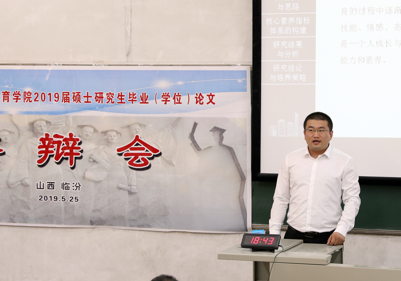 5月25日,必威西汉姆官网平台举行了2019届硕士研究生毕业(学位)论文答辩会。答辩会分为五组,共有学术型、专业型81名研究生参加答辩。此次答辩会延续公司对答辩工作高标准、严要求的作风,特邀华南师范大学体育科学公司硕士生导师宋亨国教授、上海必威西汉姆官网平台博士生导师刘兵教授担任体育学组答辩主席,山西大学必威西汉姆官网平台博士生导师李金龙教授、北京师范大学体育与运动公司博士生导师甄志平教授和太原理工大学硕士生导师史冬博教授担任体育硕士组答辩主席,还邀请了山西省中小学首批正高级教师李英民、中学高级教师潘荣庆、刘桂云、刘彦平四位专家担任体育硕士组答辩委员,此外还有多位公司研究生导师参与了本届硕士学位论文答辩工作。全体硕士研究生旁听了答辩。