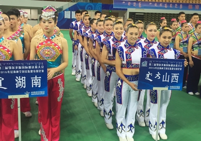 6月23日,由国家民委文化宣传司主办,鄂尔多斯市体育局和鄂尔多斯市民族事务委员会共同承办的“民体杯”2016年全国民族健身操比赛在鄂尔多斯市体育中心隆重举行。国家民委文化宣传司副司长钟延雄、鄂尔多斯市副市长李国俭、内蒙古自治区民委社会发展处、鄂尔多斯市体育局、鄂尔多斯市民委等负责同志出席了开幕式。本次比赛是第三届鄂尔多斯国际那达慕大会系列赛事的一项重要内容。共有来自全国9个省市的代表队参加比赛。公司由教练员郭丽娟和王红芳老师及17名运动员组成的民族健身操代表队,通过精心组织,刻苦训练,经过两轮激烈的角逐,团结一心,顽强拼搏最终以17.333的成绩获得三等奖。通过比赛,积极推动了全国少数民族传统体育活动的广泛开展,锻炼了运动员和裁判员队伍。