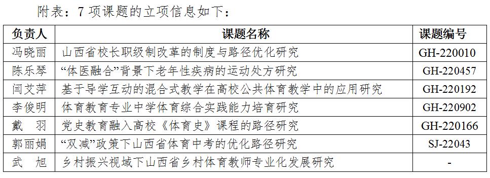 另山西省留学人员管理办公室公布的《2022年度省筹资金资助出国留学拟录取人员和省筹资金资助回国留学人员科研立项项目》通知,公司教师武旭博士申报的《乡村振兴视域下山西省乡村体育教师专业化发展研究》获批立项。(院研究生部供稿)
