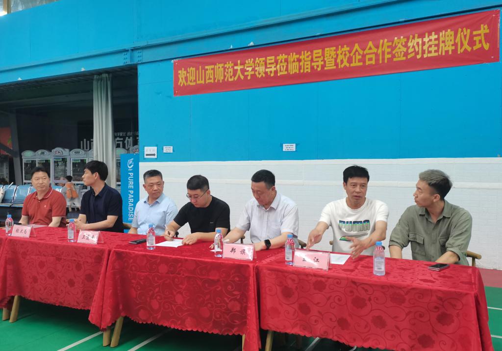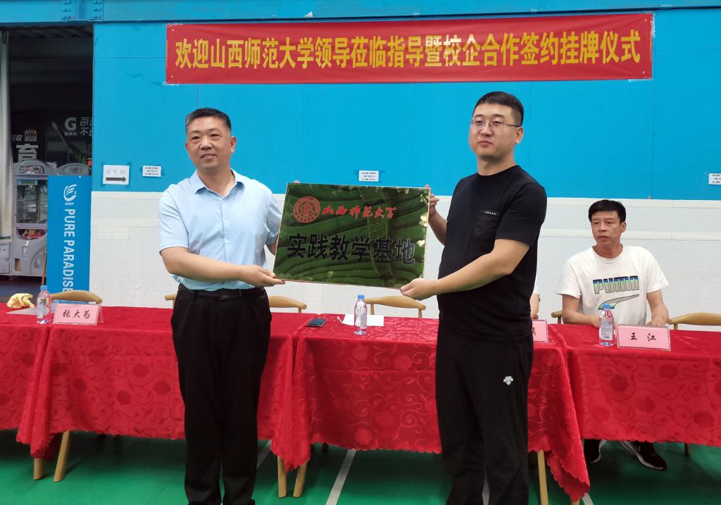 6月9日下午,必威西汉姆官网平台领导卫建平、郑旗、张大为、王江、孟春雷一行赴山西立方体育发展有限公司开展访企拓岗工作,经理郑旗代表公司与立方体育发展有限公司董事长张庆奎签订了体育教学实践基地合作协议,公司党委书记卫建平为实践基地授牌。